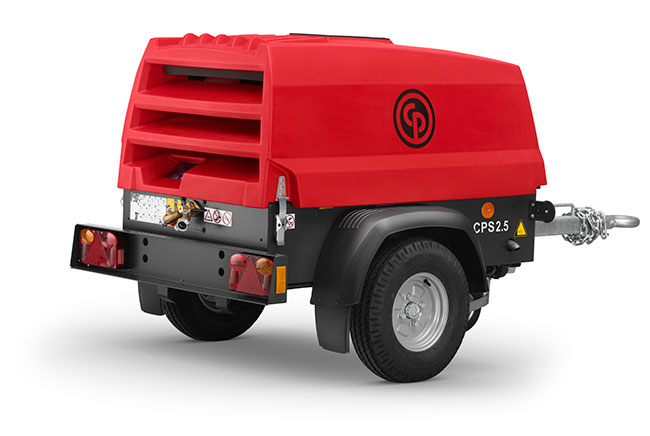 The CPS 185 KDIT4 air compressor from Chicago Pneumatic delivers the power to get the job done. Designed for demanding job sites, these compressors allow operators to run multiple hand tools and hammers at the same time for maximum efficiency. They’re also ideal for sandblasting, irrigation blow-outs and general construction applications. With noise-reducing enclosures, straightforward controls and a low-maintenance design, they’re built for reliable performance day in and day out. Features include ease of transportation; user friendly controls; efficient operation; a low-maintenance design; a cold-climate package including synthetic oils, a block heater, an HD battery, and thermostatic by-pass valve; CRN-approved vessels for Canada; and a single-axle trailer design.