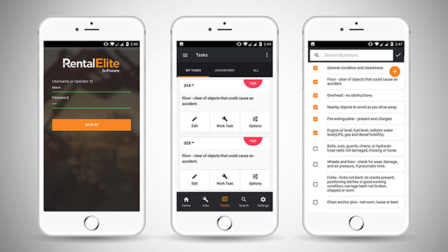 Point of Rental’s Inspection app streamlines the inspection and maintenance processes, helping businesses ensure their equipment is running properly while saving staff time and reducing safety and liability issues. Managers create checklists, determine which checklist items are critical and which ones need to be double-checked by management then assign inspections to people or management groups. Inspectors can manage their checklists via mobile device and tracking enables teams to see which items are spending the most time being inspected, which employees are responsible for inspections, and lots of other reports that ensure accountability within the inspection process. The Inspection app integrates with Rental Expert and Rental Elite and enables rental businesses to manage their inspection and routine maintenance processes digitally, saving time and money while increasing trackability, efficiency, and profit.