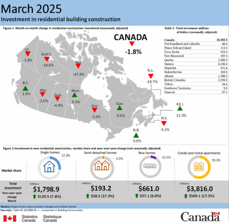 Investment in residential building construction, March 2025. (Statistics Canada)