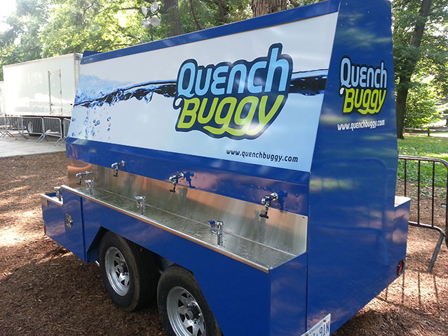 Quench Buggy is a mobile drinking water station that helps events keep people safe by hydrating them with free filtered water when connected to a potable water source, or by having the tank prefilled. This service is available throughout North America with sales available around the world. Quench Buggy mobile drinking water stations have been used in emergencies, at street festivals, concerts, convention halls and even church gatherings. With three different styles of units, Quench Buggy can provide any service needed for any event.