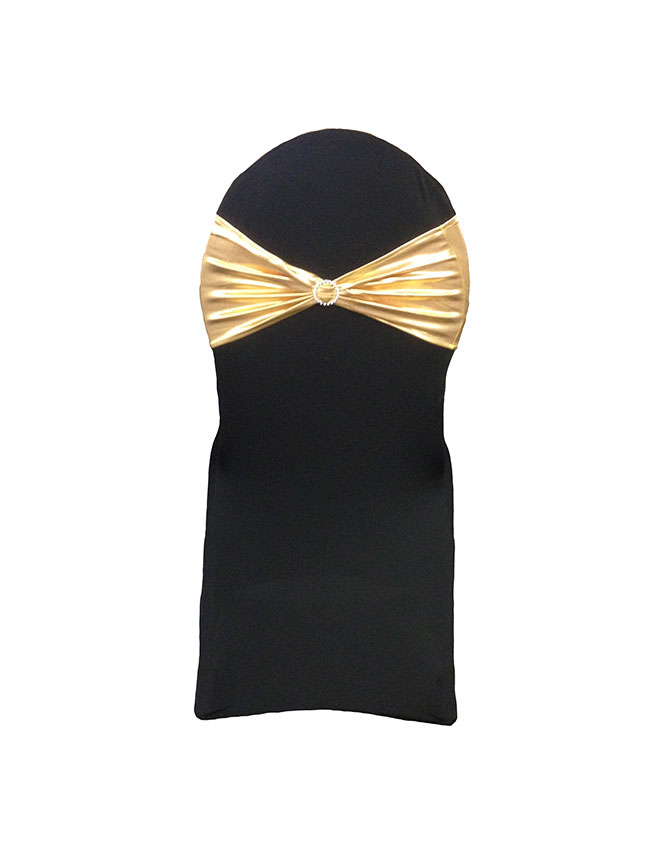 National Event Supply has introduced new gold metallic spandex chair sashes. Gold is still a hot colour in the special event industry. Consider investing in gold metallic spandex chair sashes to wow brides. They work well with black or white chair covers and would provide a metallic compliment to any event using gold as one of the primary theme colours. These chair sashes are 190 grams-per-square-metre spandex and double-lined for additional durability. The chair sashes come with a non-removable silver plastic buckle and are machine washable for ultimate ease of use.